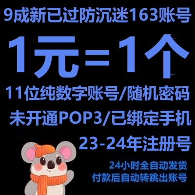 已过防沉迷11位纯数字163账号--------9成新邮箱号/随机密码/11位纯数字账号/已绑手机/未开通POP3/死绑无法改密